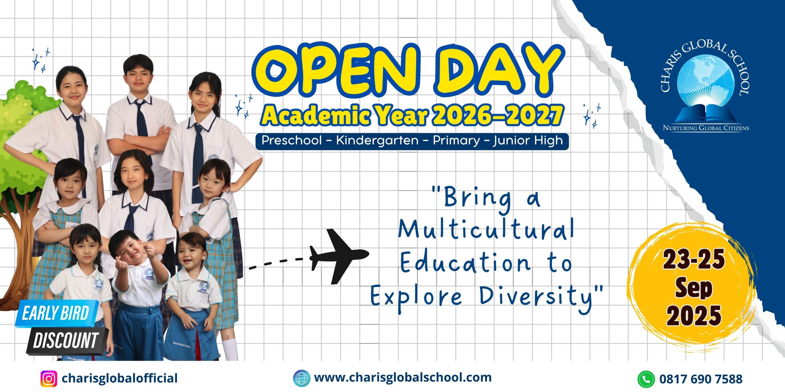 Charis Global School is a national plus school located in in Lippo Cikarang, Bekasi City, West Java, Indonesia. Basically, the school programs are developed into three categories: Early Childhood Program (Nursery 1-2 and Kindergarten 1-2), Primary Program (Grade 1 to 6) and Junior High Program (Grade 7 to 9).